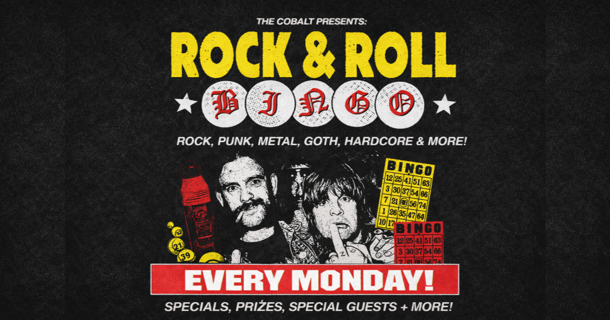 Rock & Roll Bingo takes place every Monday at the Cobalt and flips the classic game into a loud, rowdy weekly hang packed with rock, punk, metal, hardcore, and more! Hosted by BUGSY, it’s anything but quiet - think big tunes, cheap drinks, rotating themes, and the occasional surprise guest. It’s never the same night twice!
