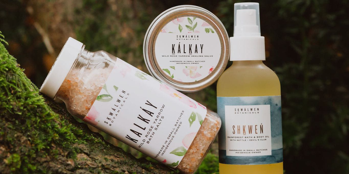 Sḵwálwen is an Indigenous skincare line. All of their products are using respectfully harvested botanicals, organic oils, nourishing plant-derived butters and steam distilled essential oils. The products are made sustainably and ethically in small batches in the Canadian PNW, using Skwxwú7mesh cultural teaching.